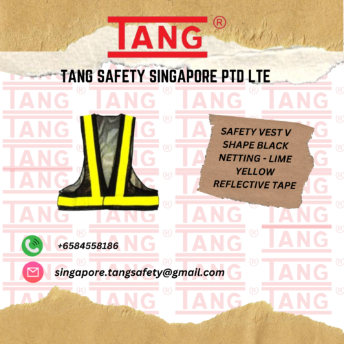 SAFETY VEST V SHAPE BLACK NETTING – LIME YELLOW REFLECTIVE TAPE